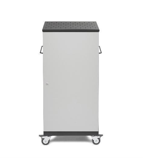 Armário de transporte desenhado com chapa reciclada de 0,8mm, ecológico e funcional. Os portáteis são transportados na posição horizontal. Porta dupla com alta de segurança. Orifícios de ventilação na parte traseira, inferior e superior. Instalação elétrica através de interruptor magneto-térmico. Reservas de energia com botão liga/desliga.