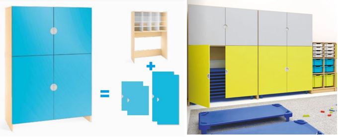 Possibilidade de escolher a cor das portas (azul, cinza e branco)