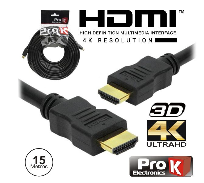 Cabo HDMI Dourado Macho / Macho 2.0 4K Preto 15M PROK